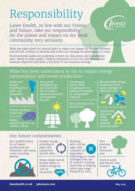 Lanes Health, in line with our Visions and Values, take our responsibility for the planet and community very seriously.